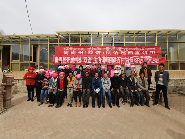 为加强农牧区法治宣传教育工作,切实增强广大群众的宪法意识和法治观念,教育引导广大群众自觉依法依规办事,根据州委宣传部、州委政法委、州法宣办《关于组织抽调州县“双语”法治讲师团深入百村(社区)开展宣讲活动的通知》要求,贵德县及时协调各方力量,紧紧围绕“扫黑除恶”专项斗争、乡村振兴战略、精准脱贫攻坚战、民族团结进步创建等县委县政府中心工作,结合当前开展的“一讲两办三推进”活动,3月26—29日,利用4天时间在全县重点村、社区及学校集中开展法治宣讲活动。